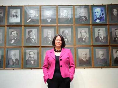 First lady: Professor Yellowlees standing in front of past portraits of RSC Presidents at Burlington House, Piccadilly Picture: Royal Society of Chemistry