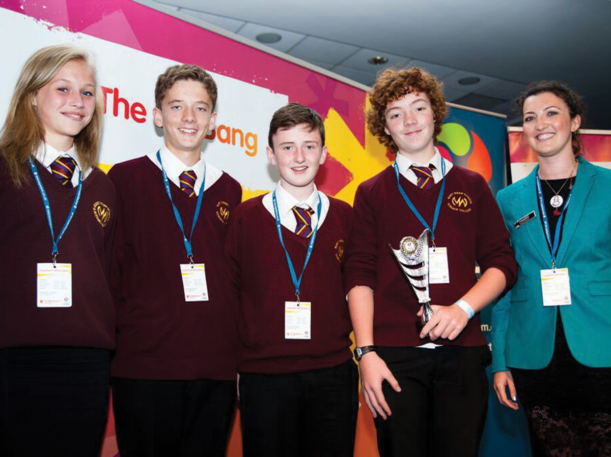 "Tom Blain, Rhys Evans, Ella Boswell, and Sam Morris from Mary Webb School and Science College won this prize for an experiment which looked to see if music improved productivity in the classroom."