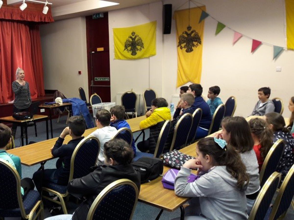 Our next visit was to a supplementary language school on the site of the Greek Orthodox Church in North Manchester. In this case the volunteer was Dr Konstantina Drosou, also from the Manchester Institute of Biotechnology who works in the field of biomolecular archaeology. Again two sessions were organised – one for younger children and another for teenagers – and both were given in Greek, with English used to clarify scientific words the children might have learnt in school.