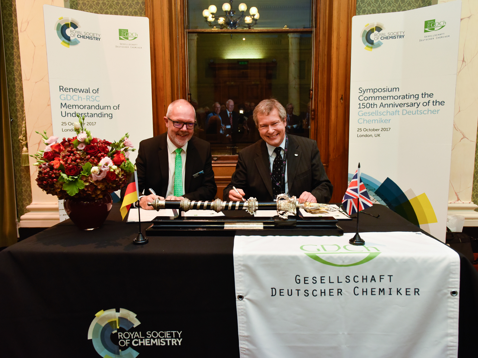 Robert Parker (left) signed a renewed memorandum of understanding with his GDCh counterpart Wolfram Koch Picture: © Royal Society of Chemistry
