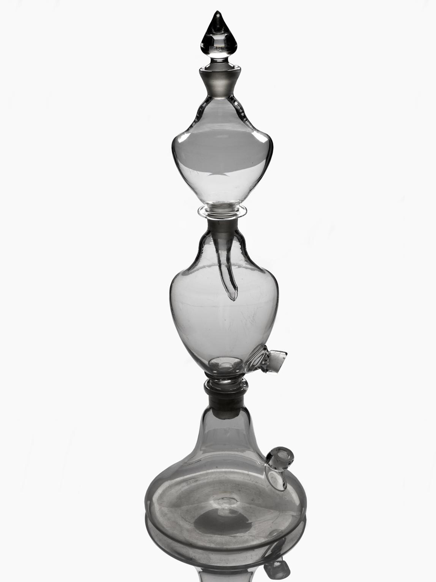 Invented by John Mervyn Nooth (1737–1828) in 1774, this device was made to reproduce natural spa water for medicinal uses. Following Joseph Priestley’s (1733–1804) experiments, carbon dioxide mixed with water was thought to be effective against many diseases such as scurvy. Nooth’s invention, which made carbon dioxide-rich water, was popular and sold in large numbers.