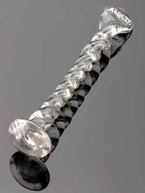 This ornate twisted glass stirring rod was made by the Phoenix Glassworks in Bristol.
