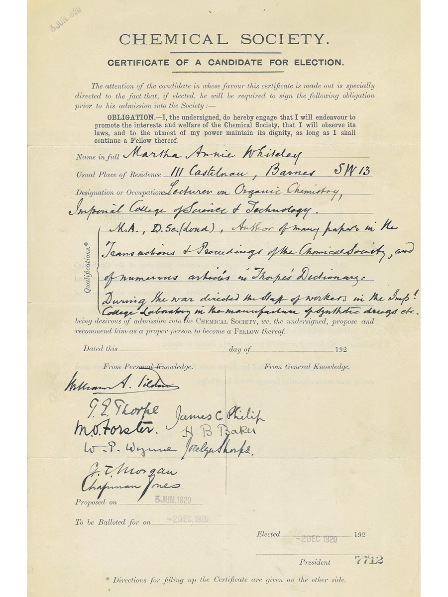 Martha Whiteley's certificate of admission to the Chemical Society Picture: © Royal Society of Chemistry