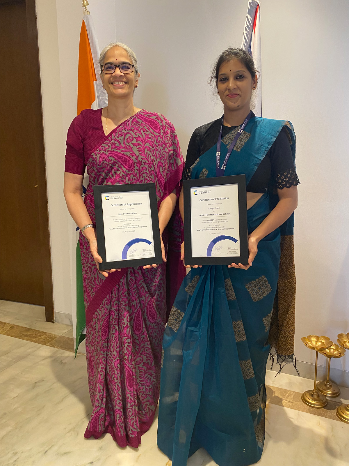 Professor Dame Angela McLean said: "The training of 40,000 teachers since 2015 by the Royal Society of Chemistry is no mean feat and is a credit to the programme trainers such as Jaya P Swaminathan who brought me up to speed on how the training works. It was a pleasure to celebrate with Shilpa Sunil who is an excellent representative of the talent and expertise that students in India will benefit from thanks to the Yusuf Hamied Inspirational Science Programme.”