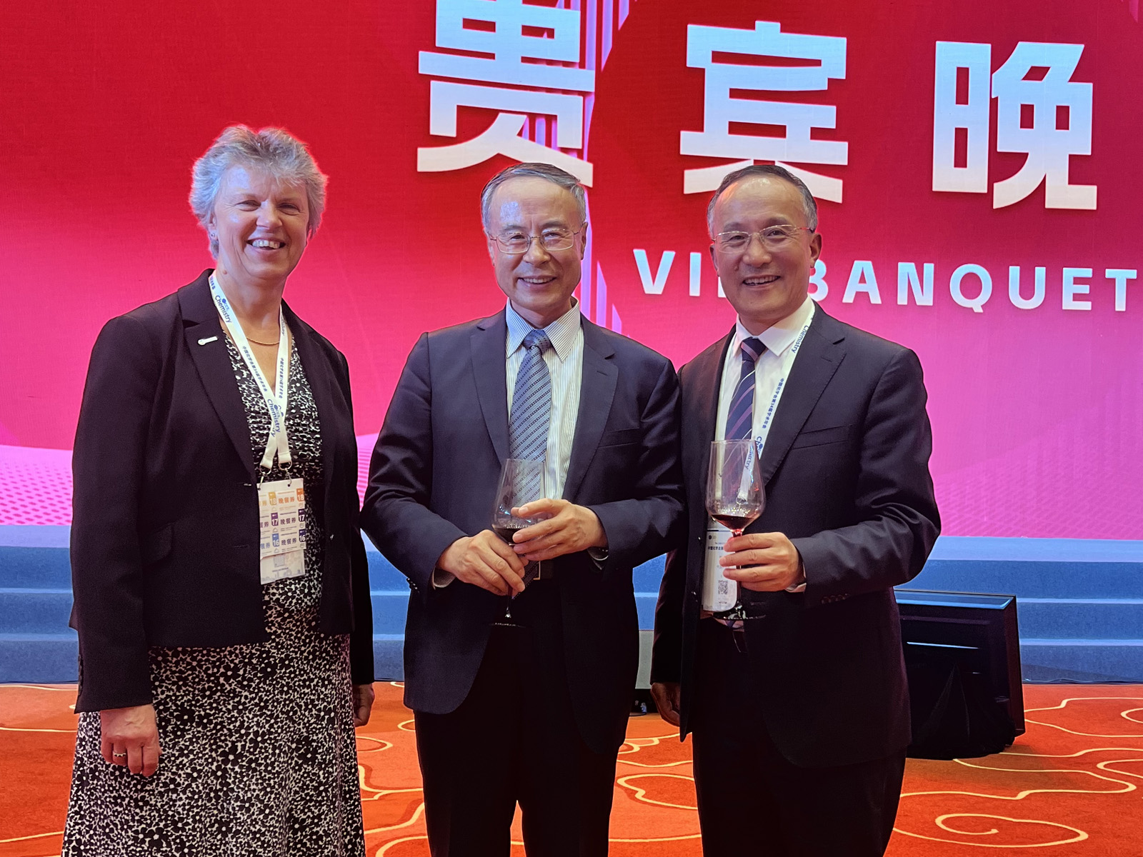 Prof Gill Reid (left), CCS president Prof Li-jun Wan (middle), and Prof Tao Zhang (right), at the VIP banquet Picture: © Royal Society of Chemistry