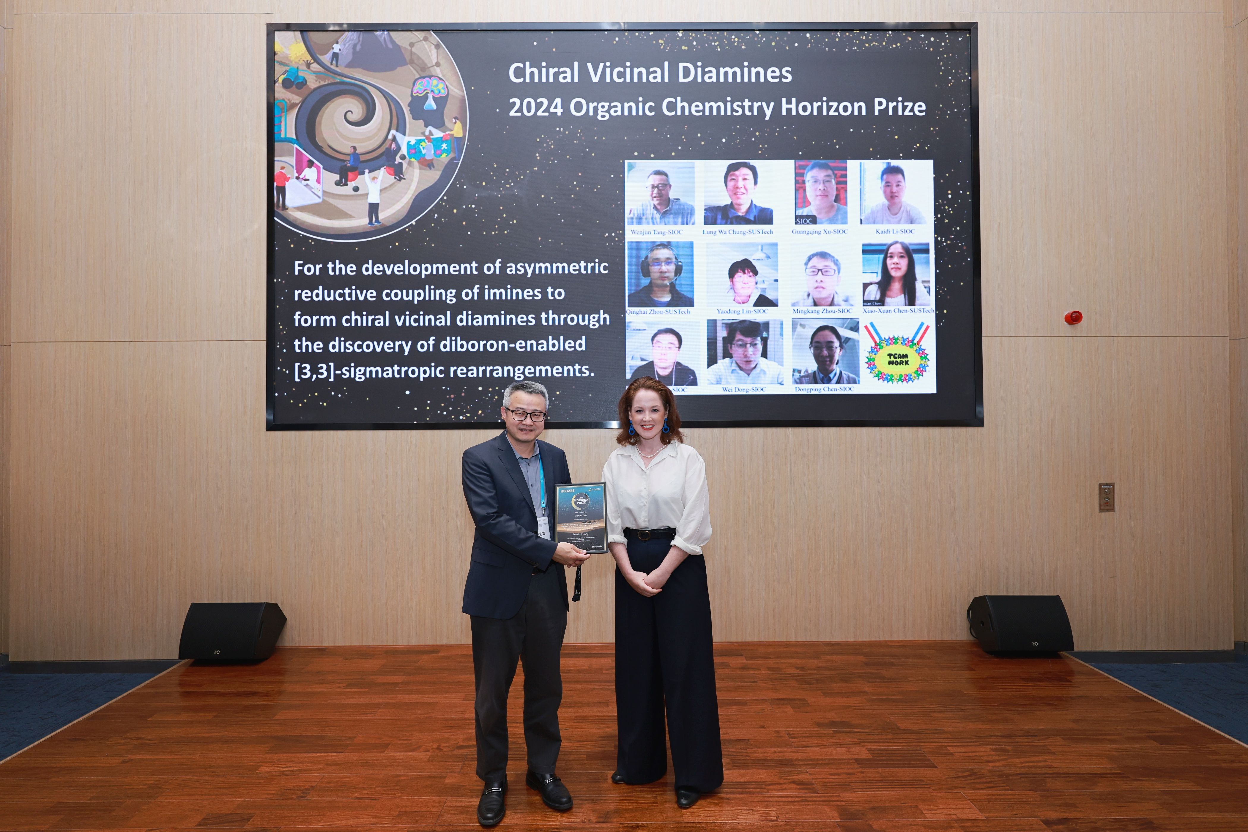 - The Chiral Vicinal Diamines team, led by Professor Wenjun Tang from the Shanghai Institute of Organic Chemistry, Chinese Academy of Sciences, won the 2024 Organic Chemistry Horizon Prize: Robert Robinson Prize in Synthetic Organic Chemistry
