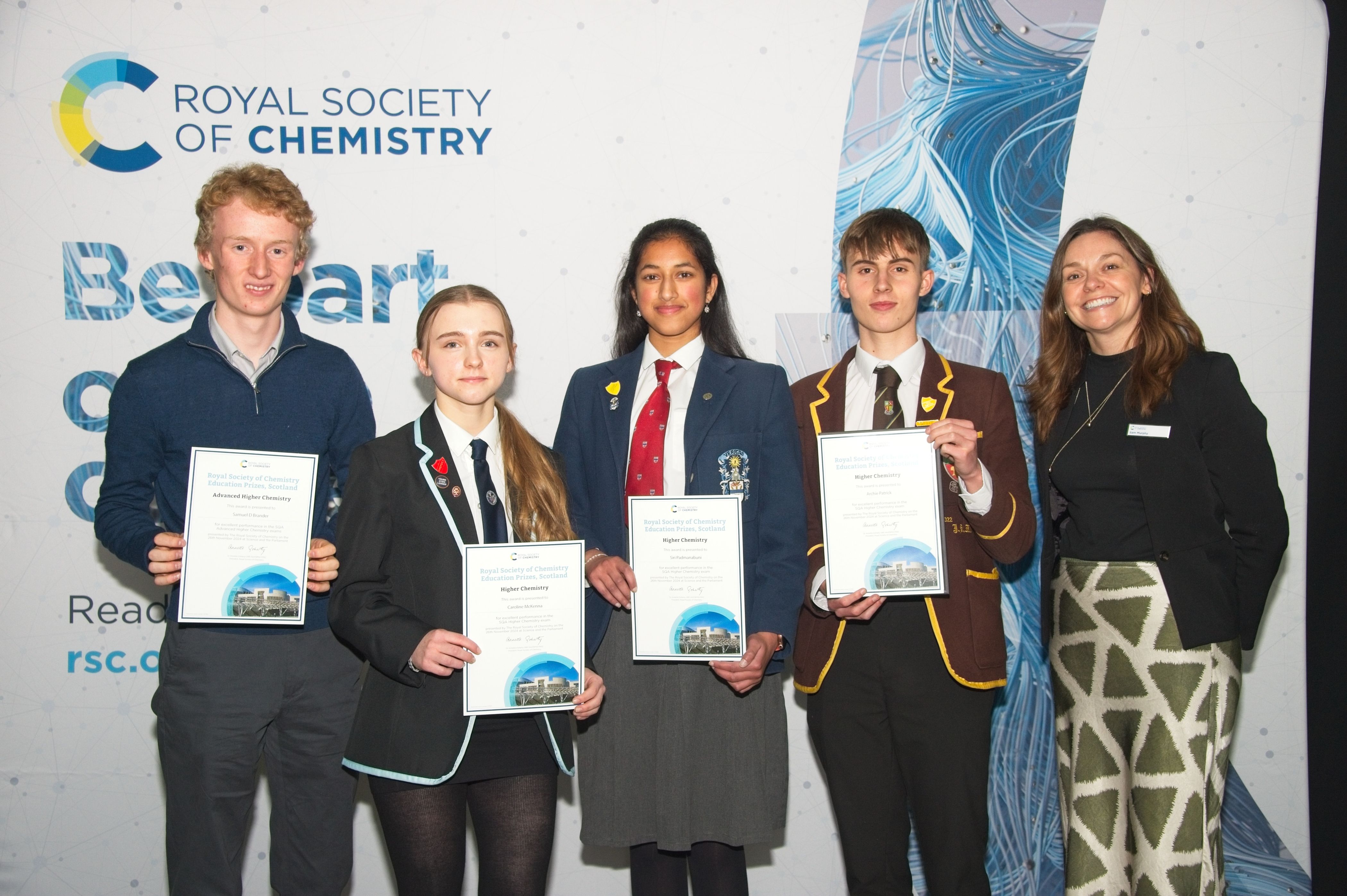 Representatives from the RSC, the Institute of Physics, the Royal Society of Biology, the Royal Scottish Society of Arts and the Edinburgh Geological Society handed out the prizes while Dr Doherty also congratulated the winners in her closing remarks.