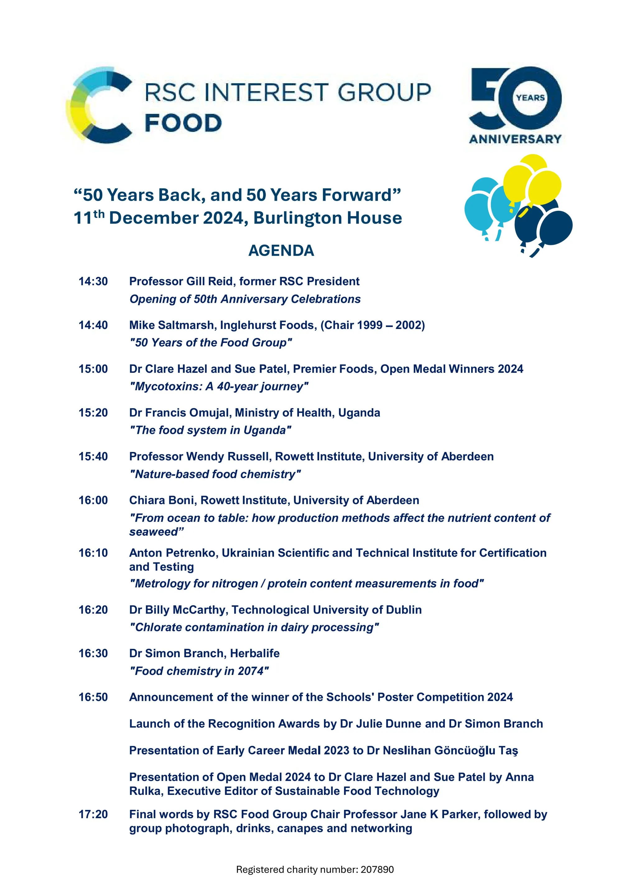 The RSC Food Group marked the landmark occasion with a special event, “50 Years Back, and 50 Years Forward”. During the half-day gathering in December, researchers from as far afield as Uganda, Turkey and Ukraine came together and gave presentations at Burlington House.