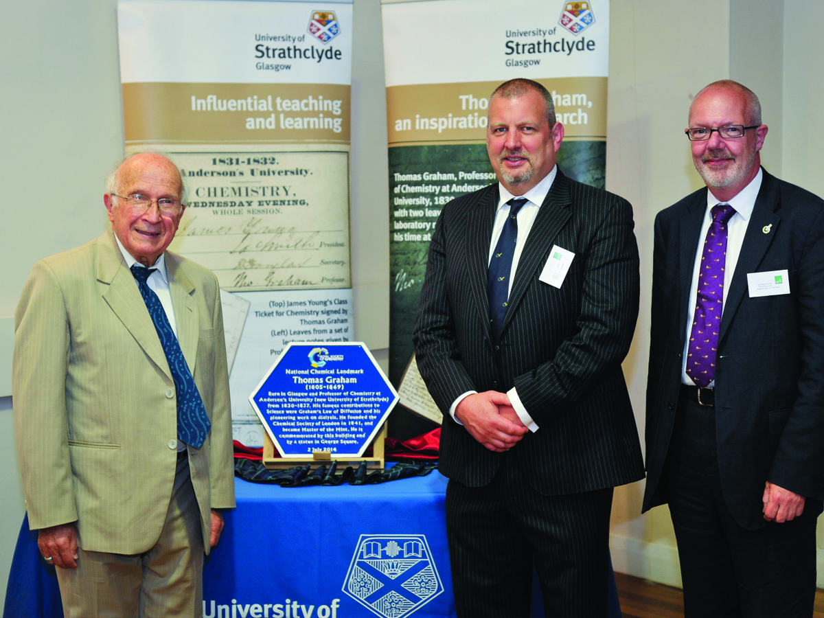 We celebrated the life and work of our founding president, Thomas Graham, by awarding a chemical landmark plaque to the University of Strathclyde.